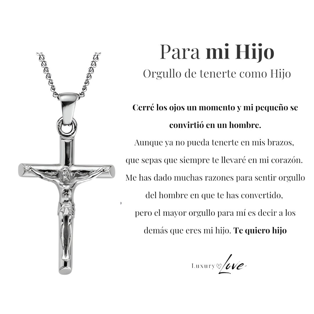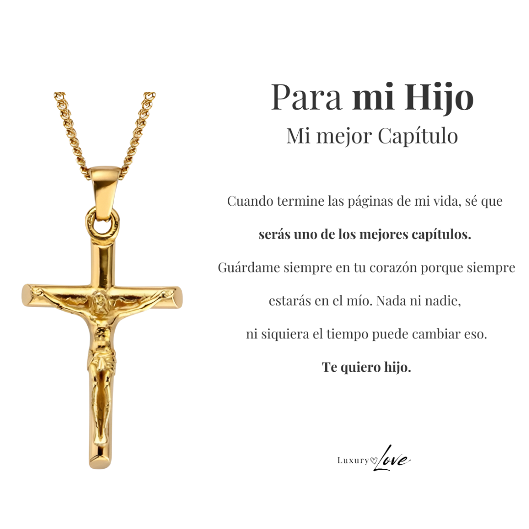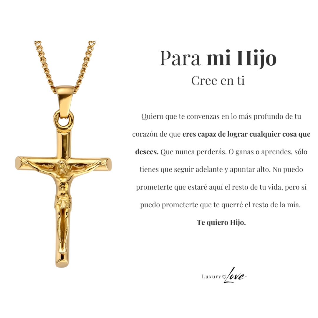 Collar Cruz® - Para mi Hijo (con nota dedicada y caja de madera con luz)
