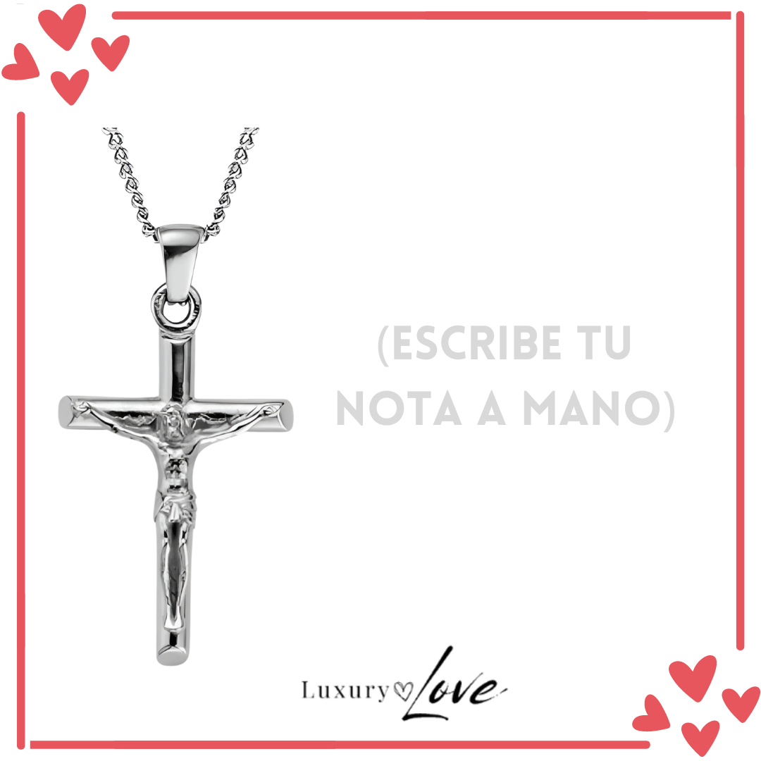 - Collar Cruz® Plateado (de acero inoxidable plateado de 62 cm) o Collar Cruz® Dorado (de acero inoxidable bañado en oro de 18K).